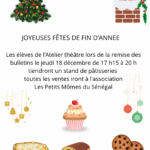 Des fournitures scolaires sont récoltées toute l’année pour les enfants scolarisés au Sénégal. Ces fournitures sont envoyées sur place une fois par an par Mme CRAPAT, membre de l’association, qui intervient dans notre atelier théâtre.